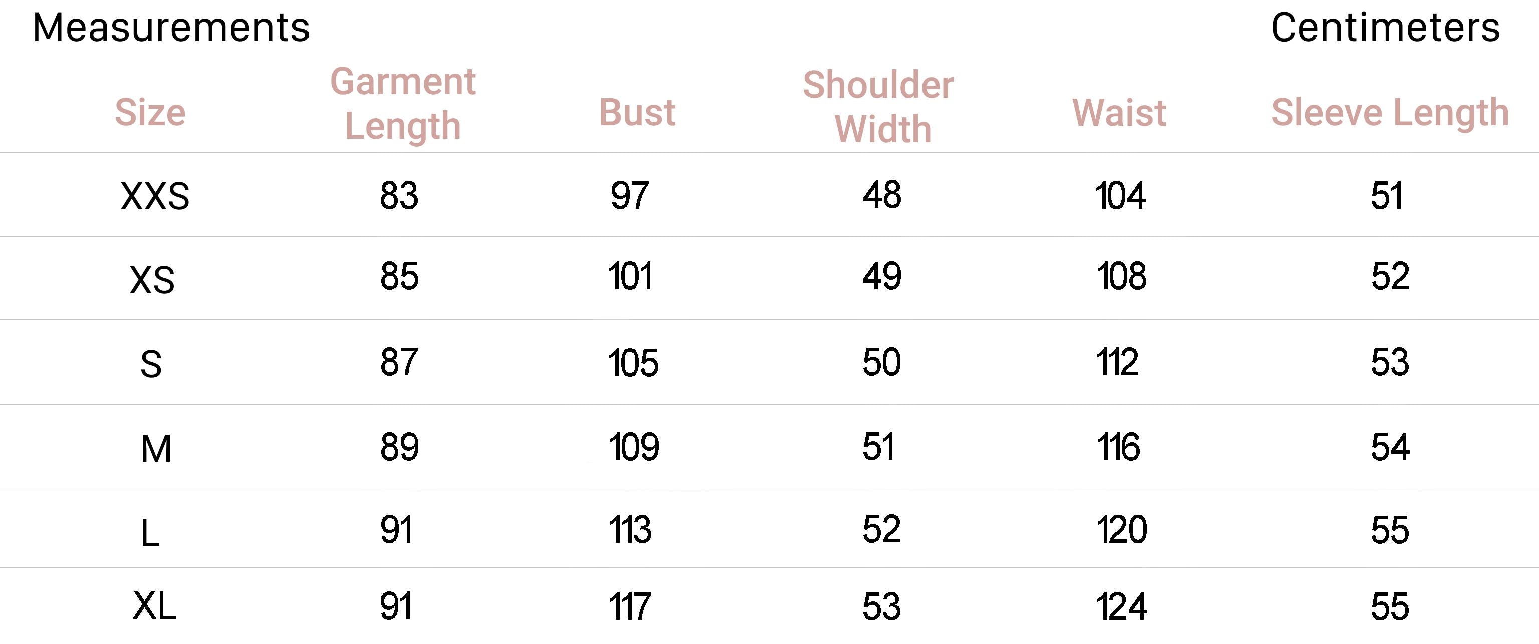 | XS | 2 | 34 | 6 | 31-32.5 | 25-26 | 34-35.5 |