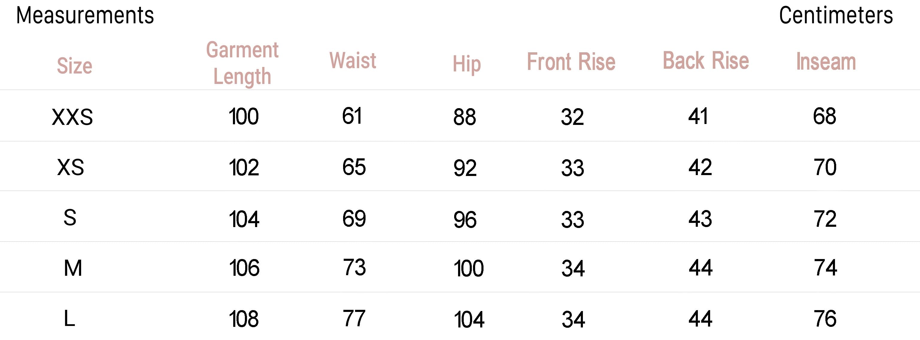 | XXS | 0 | 32 | 4 | 29.5-31 | 22-24 | 32.5-34 |