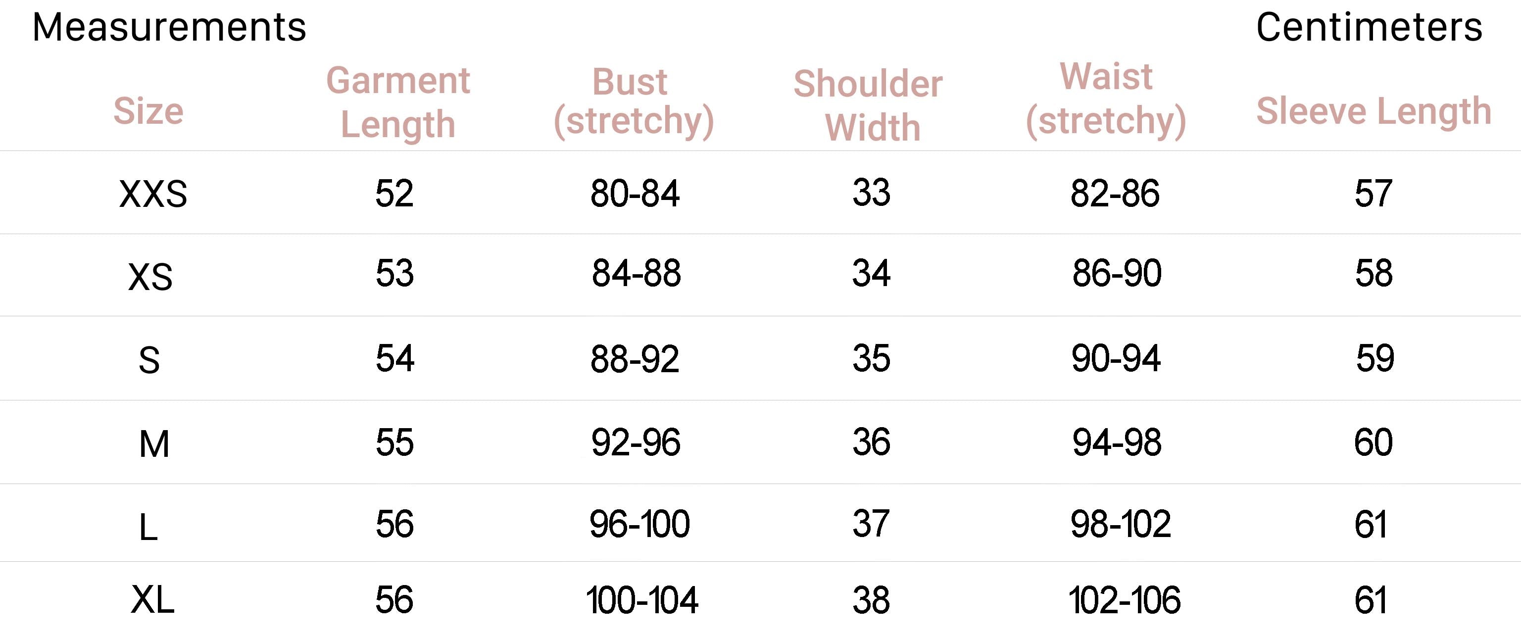 | XXS | 0 | 32 | 4 | 29.5-31 | 22-24 | 32.5-34 |