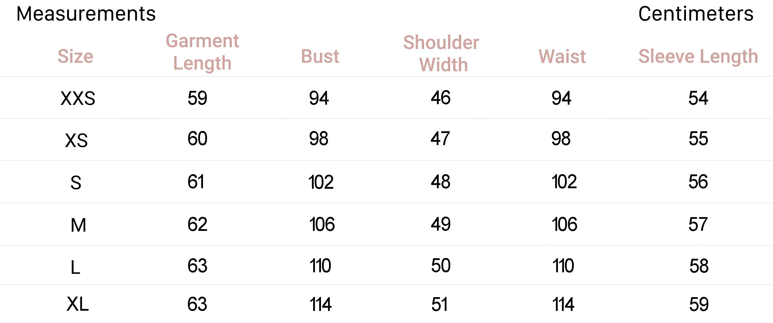 | XS | 2 | 34 | 6 | 31-32.5 | 25-26 | 34-35.5 |