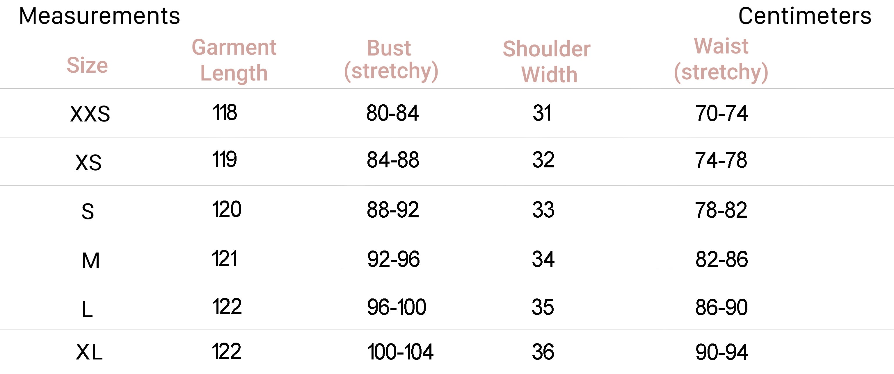 | Size | US | EUR | UK | Bust | Waist | Hip |