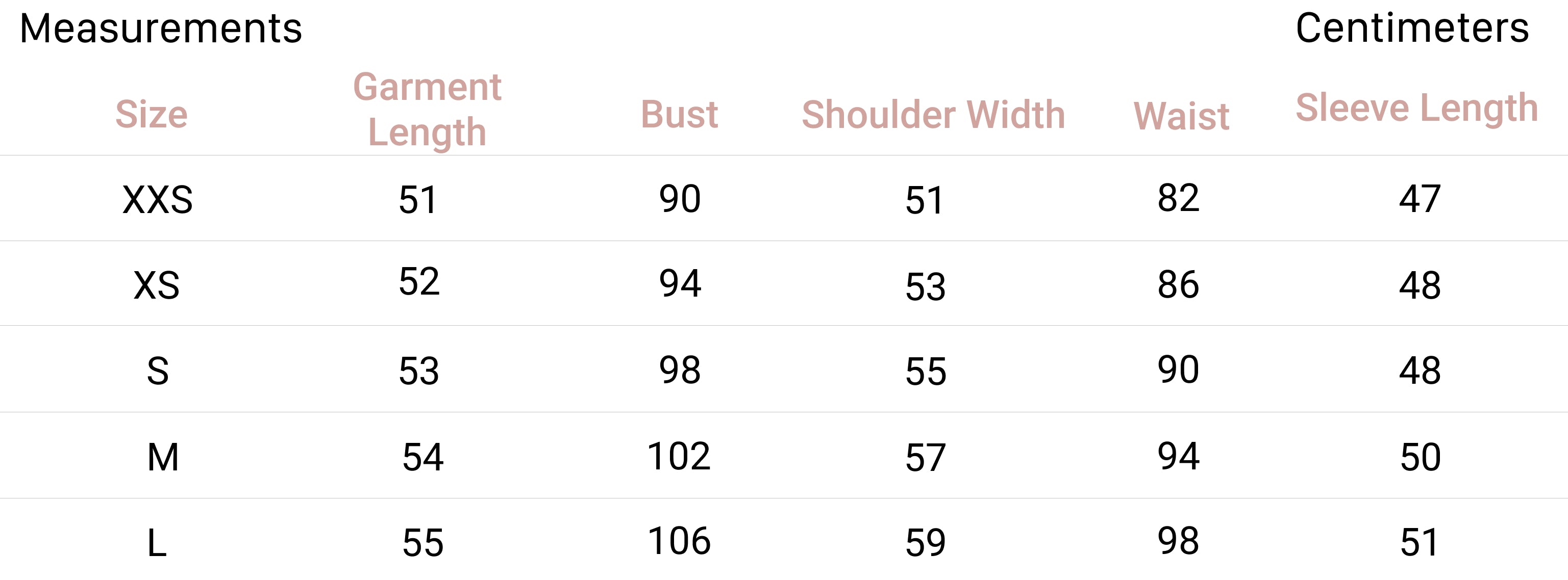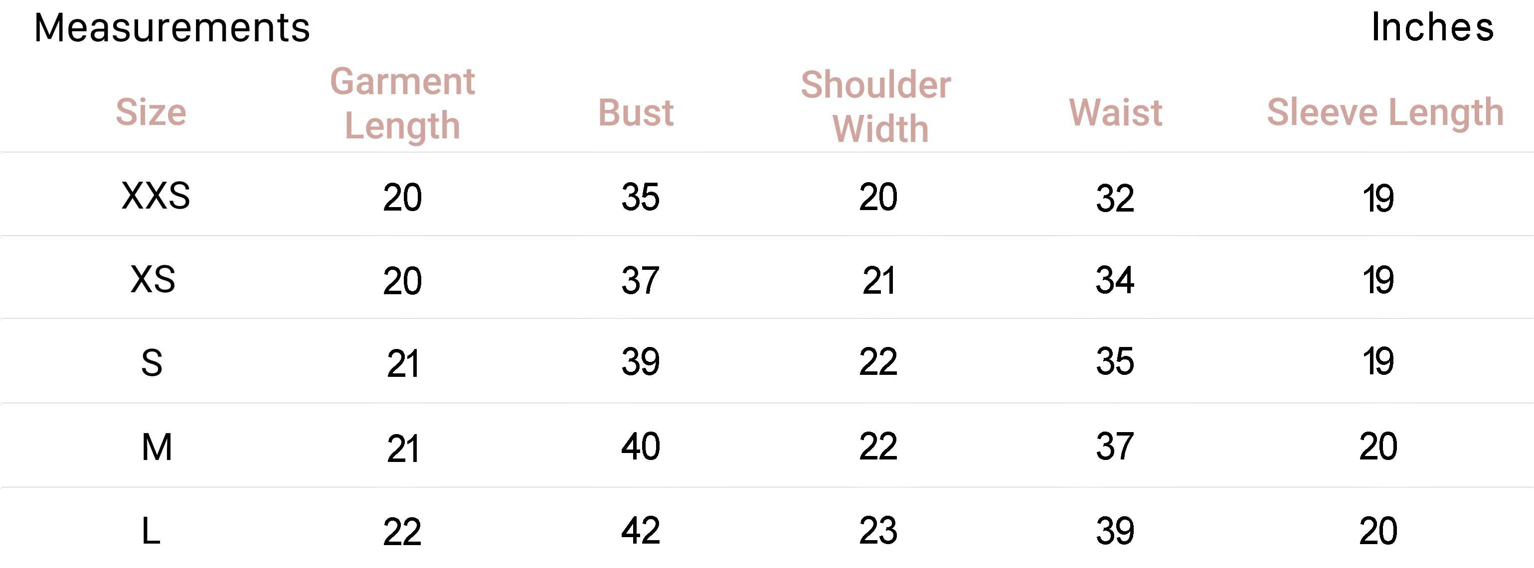 | XXS | 0 | 32 | 4 | 29.5-31 | 22-24 | 32.5-34 |