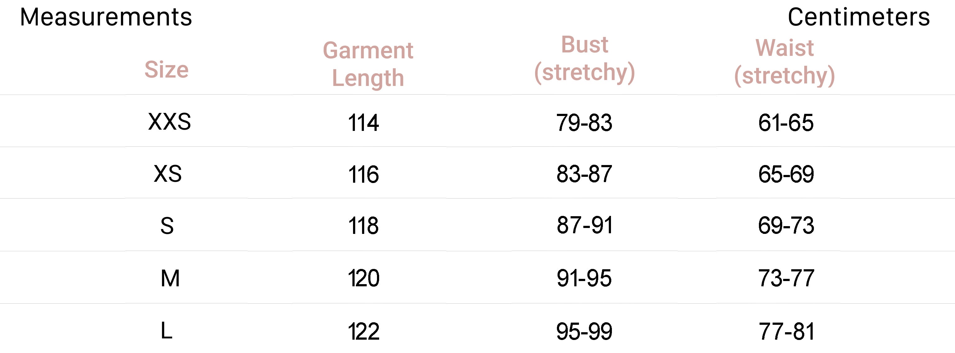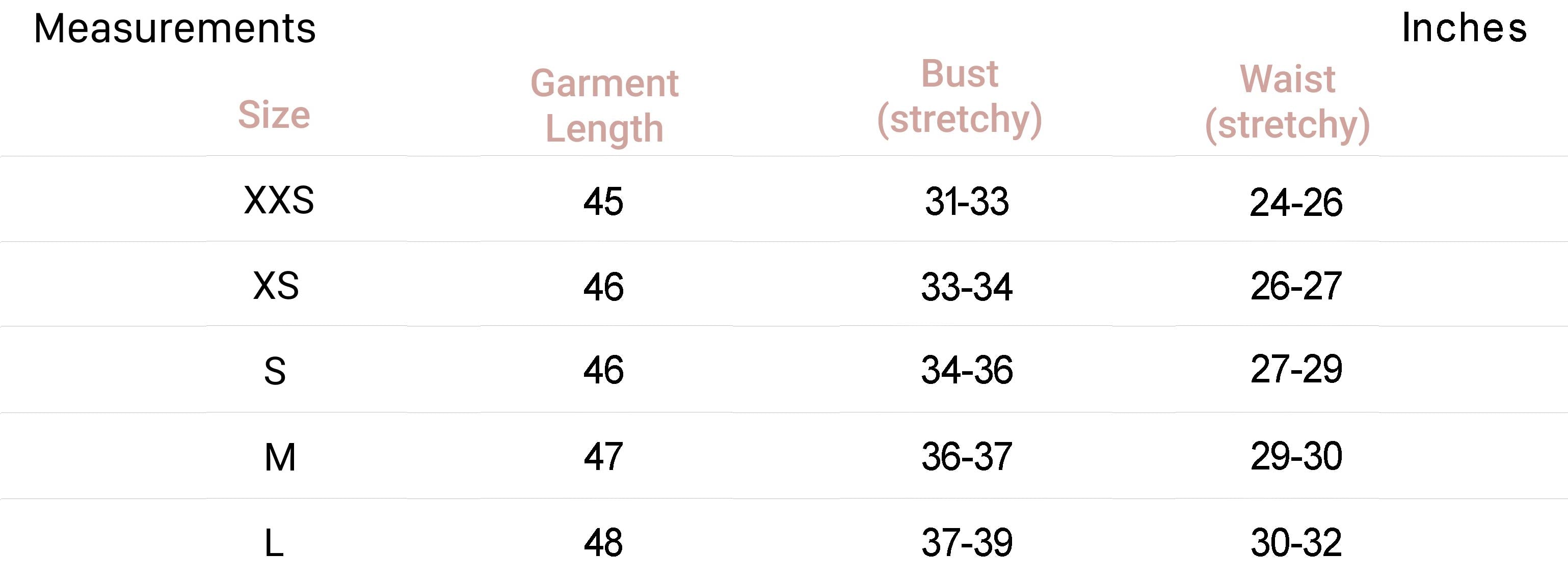 | Size | US | EUR | UK | Bust | Waist | Hip |