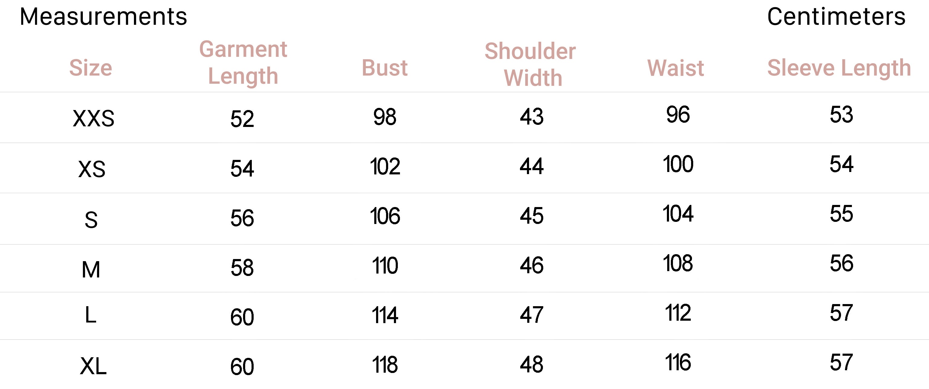 XS 2 34 6 31-32.5 25-26 34-35.5