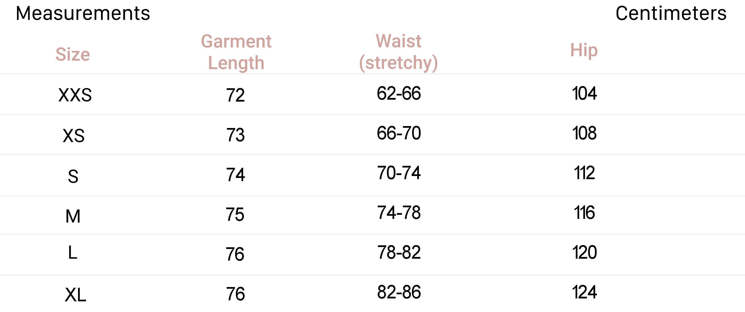 | Size | US | EUR | UK | Bust | Waist | Hip |