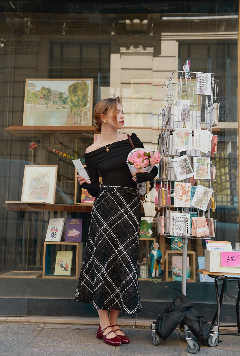 •        Pair with Monty Tweed Skirt and Vintage Chain and Tiger Stone Hook Necklace