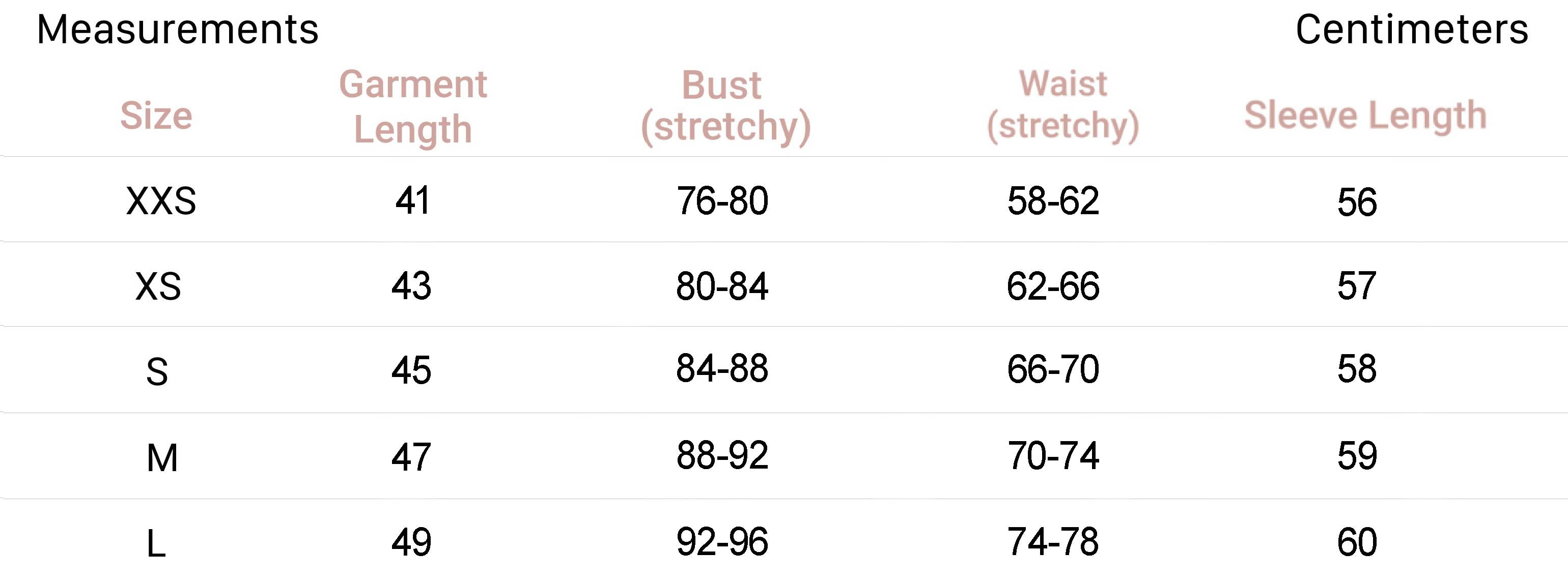 XS 2 34 6 31-32.5 25-26 34-35.5