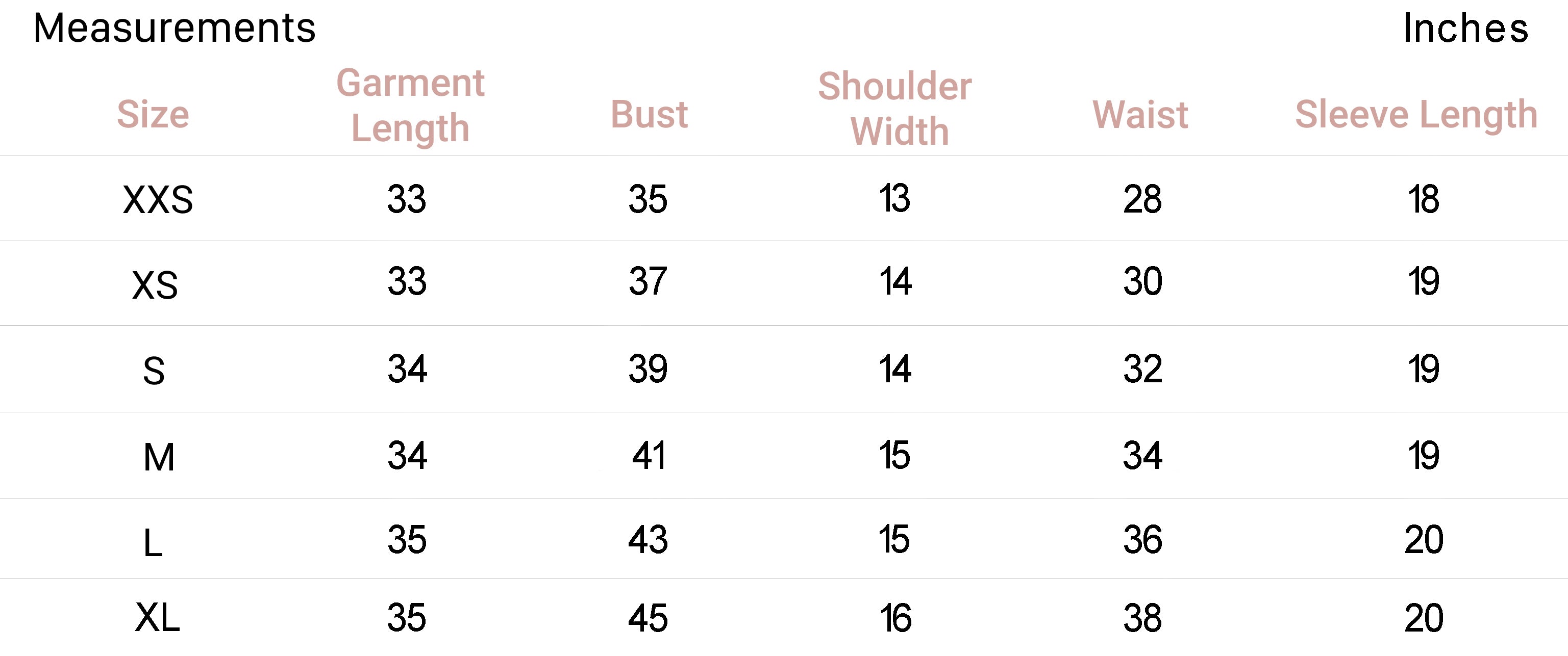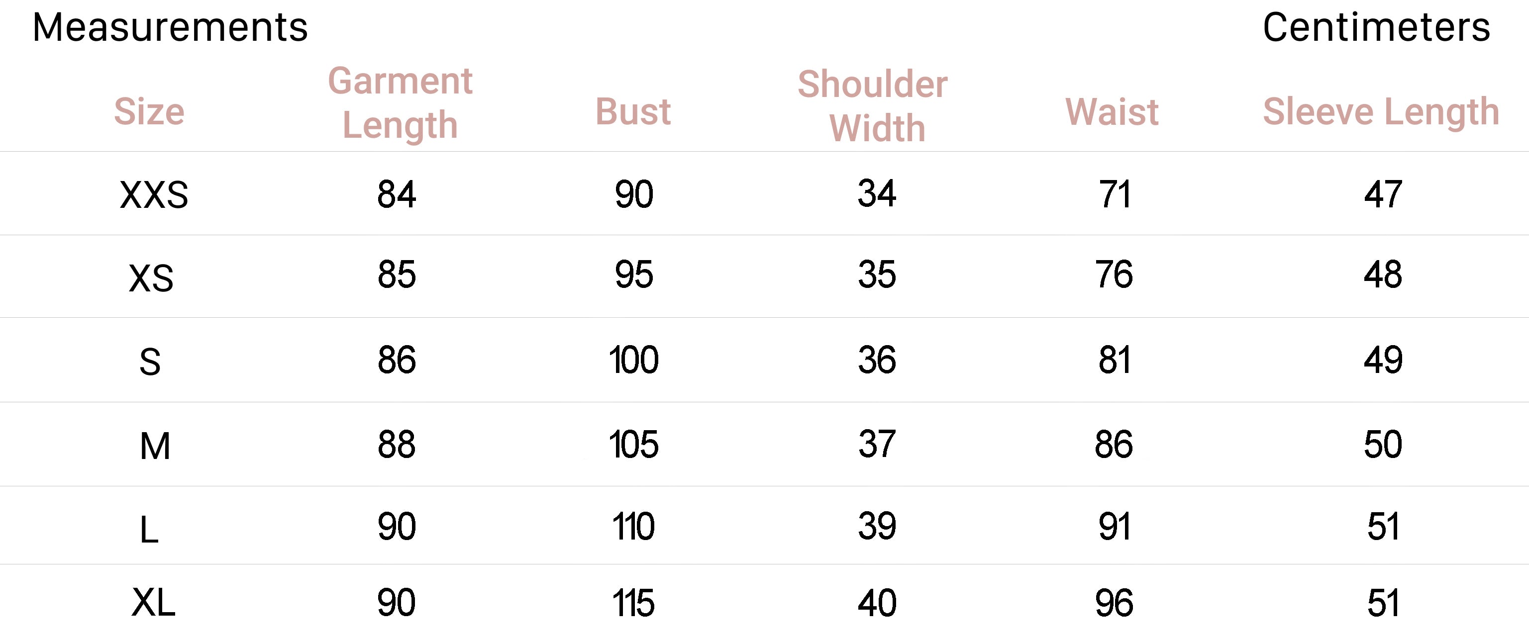 | Size | US | EUR | UK | Bust | Waist | Hip |