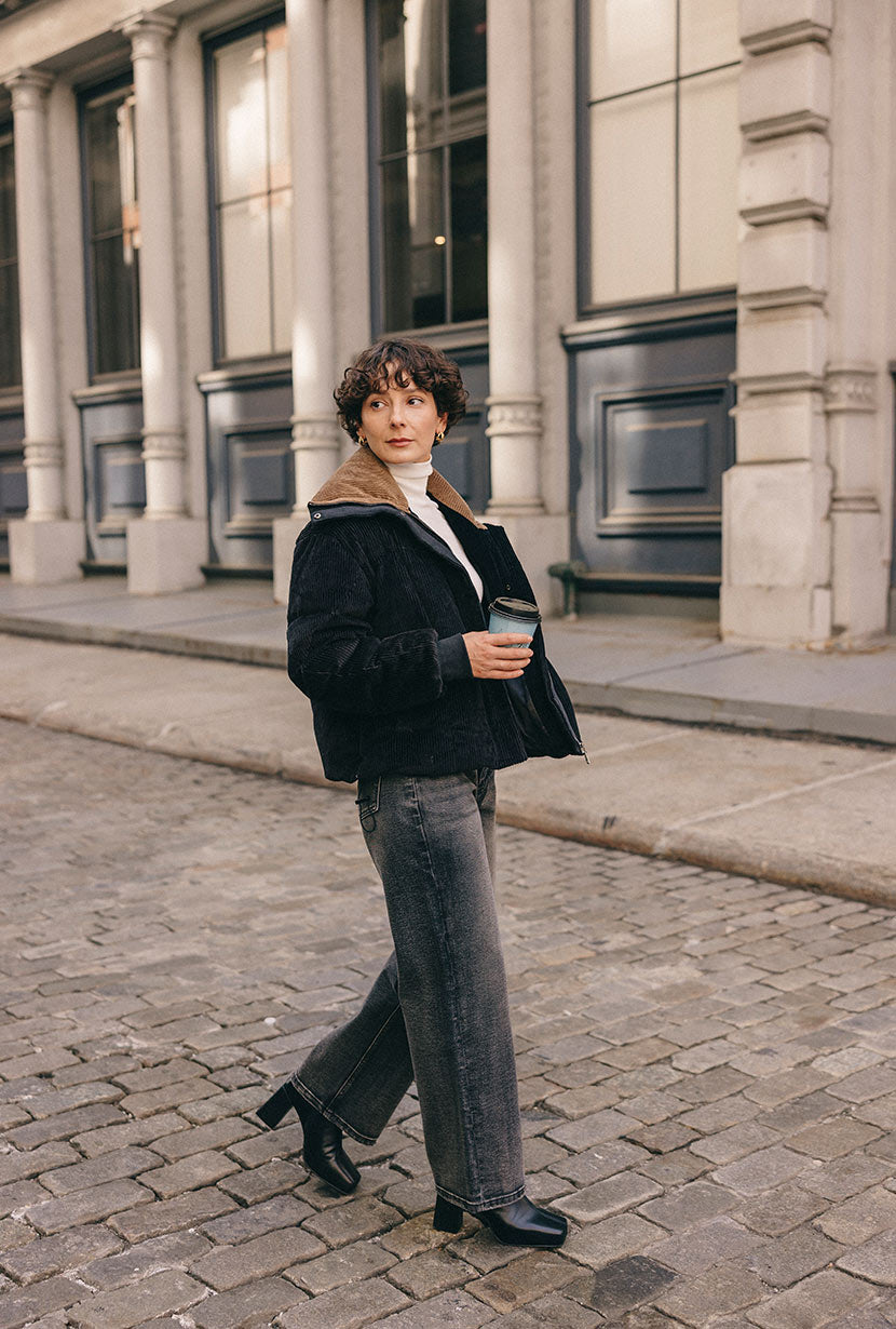 Carter Corduroy Down Jacket - Black
