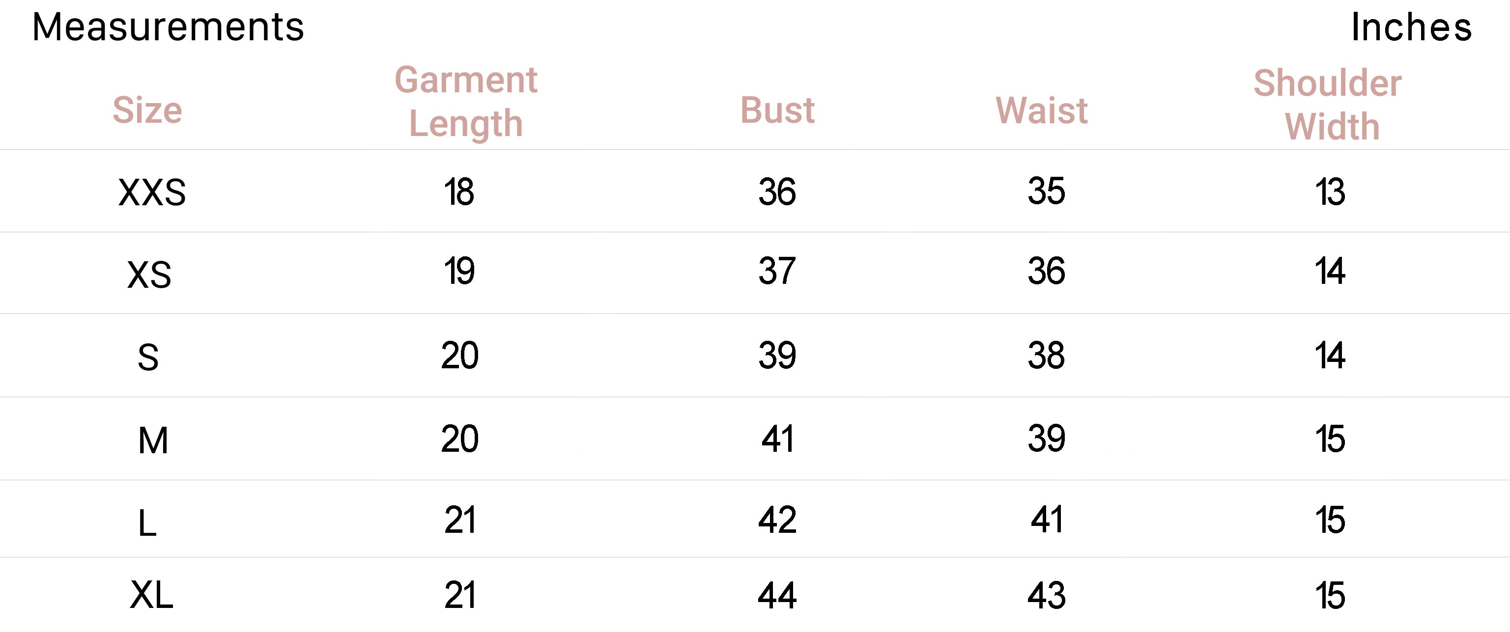 | Size | US | EUR | UK | Bust | Waist | Hip |