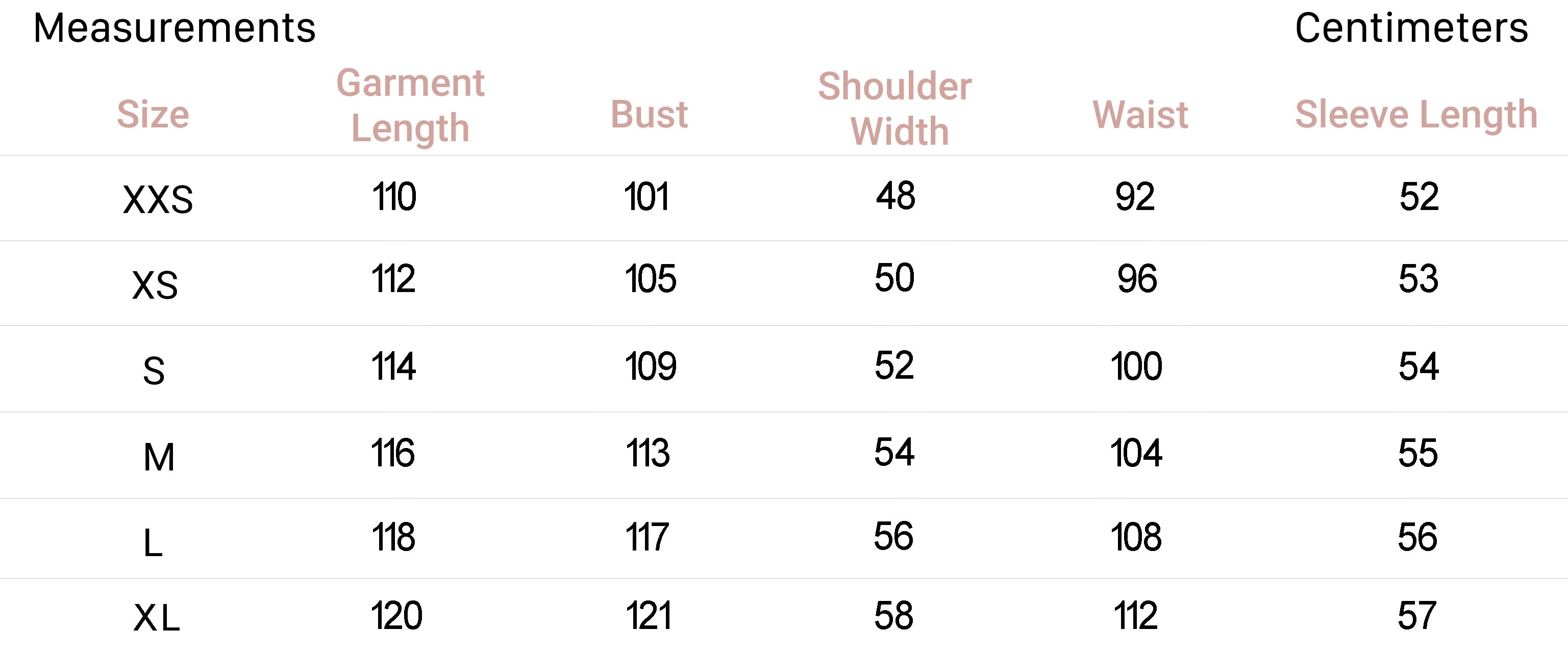 | XXS | 0 | 32 | 4 | 29.5-31 | 22-24 | 32.5-34 |
